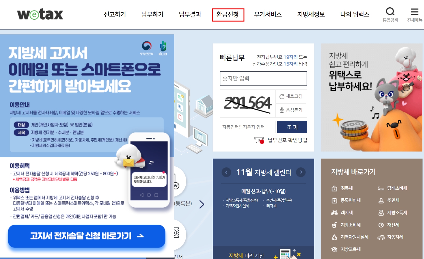 위택스 환급금 간단조회 및 통합조회 바로가기(3)