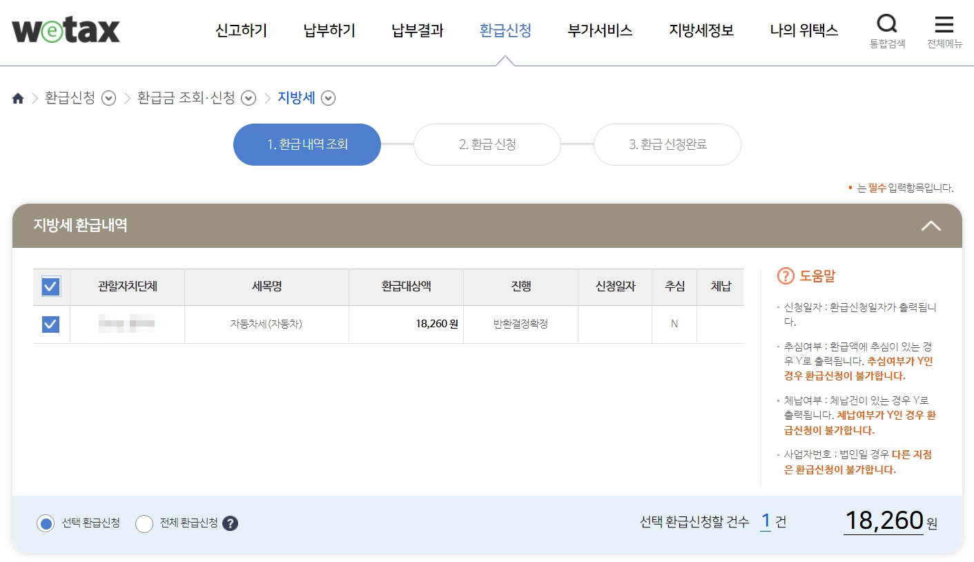 위텍스 지방세 환급내역