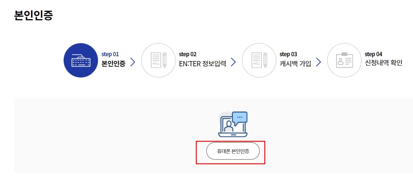 6. 본인인증에서 휴대폰 본인인증을 선택합니다.